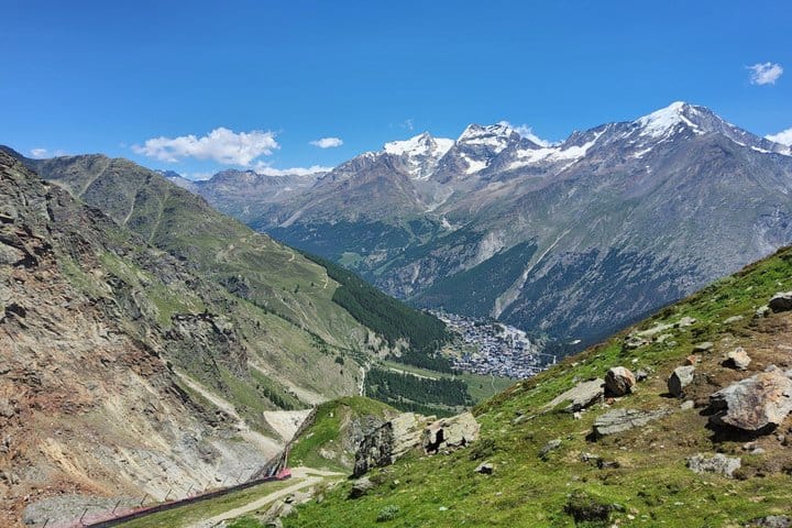 This is one of the most spectacular yet easy hikes in the Swiss Alps. Starting with a scenic cable car ride to Langfluh, you'll hike gently towards Alphubel, enjoying breathtaking views of Taschorn and Dom, then descend through the serene alpine plateau of Spielboden to the picturesque village of Saas-Fee.